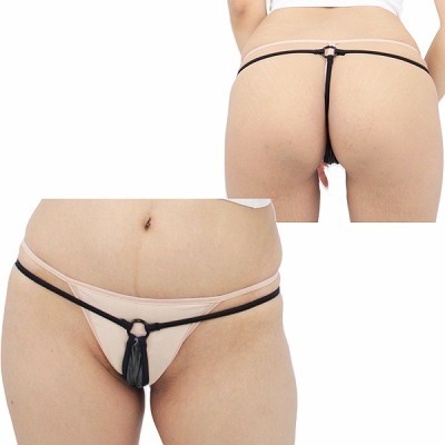 女豹のように大胆過激に攻めたい時に!極限まで生地を減らした露出度満点なオープンGスト(黒)。黒パイピングで囲われた光沢が美しい生地のクロッチ部分は穴あき仕様!いつもよりも、よりセクシーに魅せたい時に穿きたい日本製Gストリング。