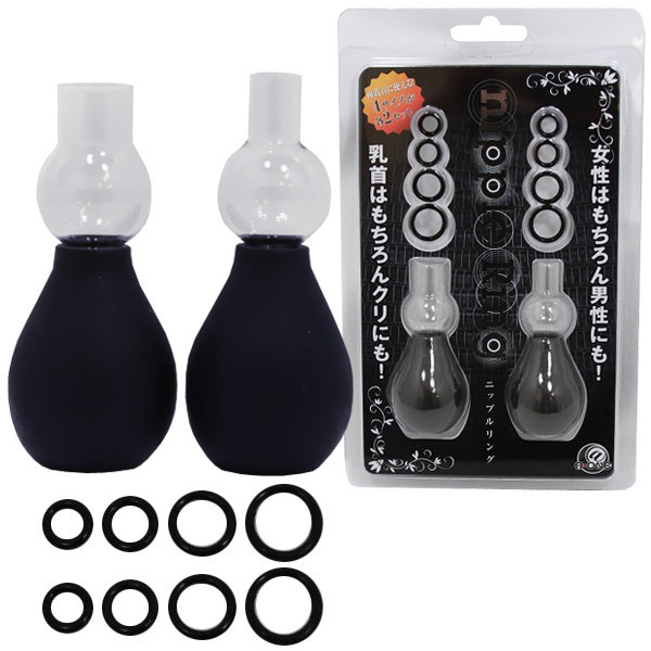 乳首やクリを強制勃起!4サイズのリングとポンプで楽しむニップルリング。 乳首の勃起状態を持続できるセット!女性はもちろん男性にもご使用頂けます。 使い方は簡単!リングをポンプの吸引口にセットし、乳首やクリをポンプで吸い上げて勃起させてから、リングを乳首やクリにスライドし固定します。 ポンプの吸い口は大小2サイズありますので、お好みの場所に合わせてお使い頂けます。