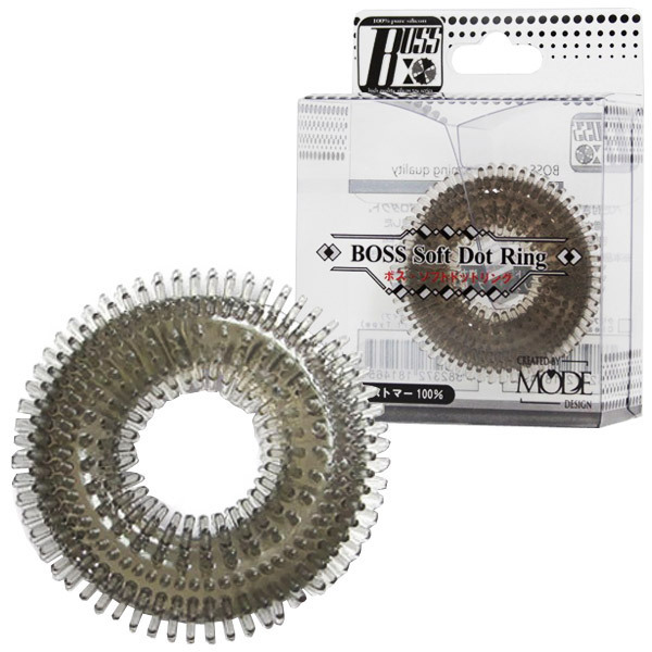 抜群の締めつけ&密集突起で快感!圧倒的なクオリティで大人気の「ボス」シリーズに、コックリングが登場しました。 素材はべたつきやニオイのない、高純度エラストマーを使用!リング表面にある無数の突起がしっかり密着し、高い締めつけ効果を発揮します。 スモークカラーのこちらは、程良く締めつけるソフトタイプ!ロングプレイを可能にする、高品質コックリングです。