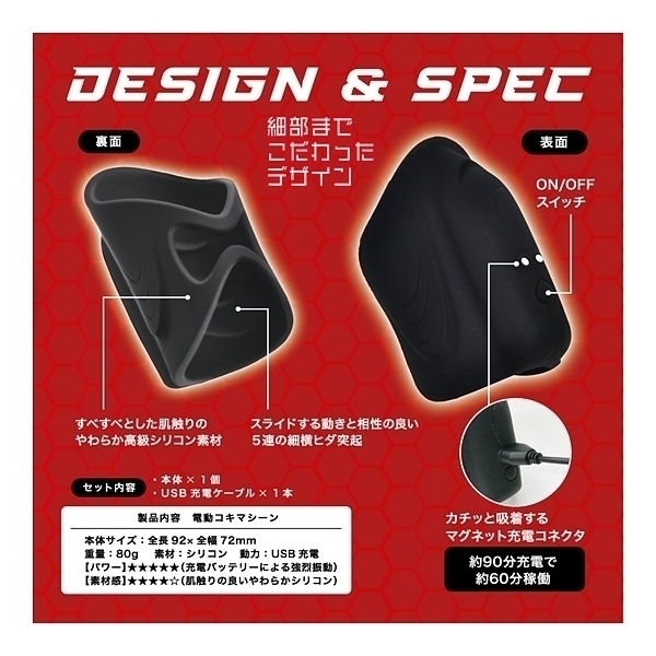 激コキ!衝撃快感が貴男を襲う!振動×シゴキによる、驚異の振動オナホールが新登場!いつもの手コキが、激烈快感のシェイクに大変身!!振動電源ONすれば、痺れるようなメガバイブレーション!さらに楽しめる振動アクションは、全10パターン!その激烈振動のハイパワーを実現させる、USB充電式バッテリー!本体内部の突起は、スライドするのにぴったりな5つの波形突起!すべすべとした肌触りの、やわらか高級シリコン素材!カチっと吸着する、マグネット充電コネクタ!約90分充電で、約60分稼働が可能!「スライド」は、上下にストロークする筒状モデル。 いつもの手コキをバージョンアップする、ハンド拡張のような電動コキマシーン!バイブレーションを楽しみながらシェイクにスライドすれば、想像を超える夢の手コキ体験となるはず! |