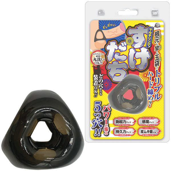 5つの穴で多彩な装着方法を実現したマルチコックリング!伸縮性の高いエラストマー素材を採用しており、ピタッとフィットして勃起力や持久力など男性機能を高めてくれる機能性バツグンのコックリング。 根元&竿&玉の3点をハードに締め上げ、最高の射精感を促します!SEX中の激しいピストンでも抜ける心配もありません。 ご自分に合った装着方法をみつけて、SEX・オナニーを楽しもう♪ |