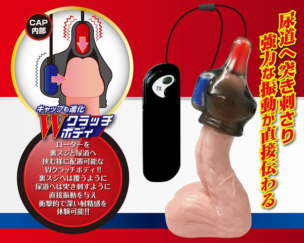 かつてない衝撃!強さの異なるダブルローターを搭載した亀頭オナグッズ「ブラックロック Wインパクト」。 異なる振動を尿道と裏スジの2ヶ所同時に当てる事で、亀頭への刺激に立体感が加わり深みのある快感に!ローターの振動パターンは連動して変化する7段階振動を搭載。 亀頭キャップ自体もローターを裏スジと尿道へ挟むように配置できるWクラッチボディへと進化!裏スジへは覆うように、尿道へは突き刺すように直接振動を与えます。 ハンズフリーで楽しめる大人気『ブラックロック』シリーズの亀頭責めグッズ!各ローターの装着位置を変えることで違った刺激を楽しめます。