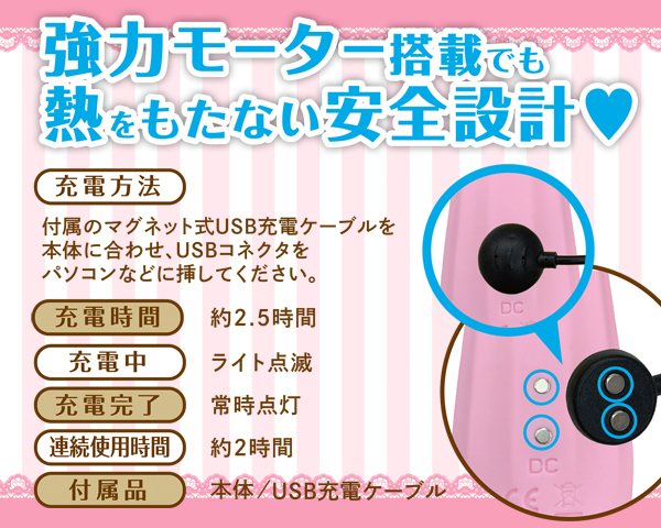 スレンダー美人なグラドルAV女優「吉高寧々」も身悶えたキュートなピンクカラーのUSB充電式電マ。 出っ張った先端がピンポイント刺激に対応!クリや乳首を責めると同時に周囲までしっかり振動を伝えます。 素材には柔らかなシリコンを採用、振動は5種類のパターンと3段階強弱を搭載!超強力モーターが生み出す快感を貴方も体験しよう♪完全防水、2.5時間充電で2時間連続稼働 |