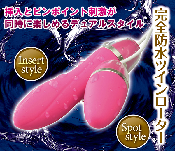 なんと30分間水没させても浸水しないという、国際基準IPX7をクリアした驚異の防水性能を誇るダブルローターです。 挿入して楽しめるインサートスタイルと、ピンポイントに当てて楽しめるスポットスタイルのヘッドは、それぞれ形が異なるのでクリに当てながら挿入したりといった使い方も可能♪振動パターンは10種類でトルクフルな強力振動はきっとクセになること間違いなし!肌触りの良いさらさらマット加工は、女性が心地よく感じること請け合いで、最新技術のウォーターシールド加工が施されているから、本体もコントローラーも水に入れても浸水しませんよ♪こちらはシックなブラックカラーになります。