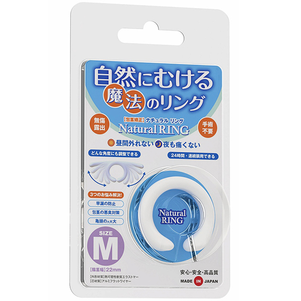 自然にムケる魔法の包茎矯正リング!「手術したくない」「自力で解決したい」そんなアナタに最適!清潔さを保ちながらスムーズな「脱皮」「成長」と「コントロール可能な持続力」を実現する魔法のリングです。 自由に曲がる絶妙な硬度のフラットワイヤーを内蔵した「自然伸縮構造」により、これまでになかったフィット感を実現したので●昼夜兼用、24時間の連続装用。 外れにくいから動きの多い昼間でも安心。 Mサイズ |