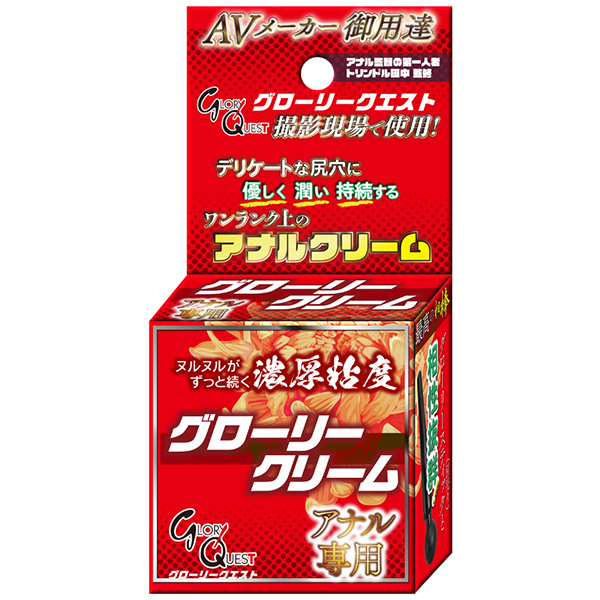 グローリークエストの撮影で実際に使用!デリケートな穴に優しく、潤う。 快適なア〇ルプレイを楽しんでいただける『ア〇ル専用』クリームです。 グリセリン未配合なのでおなかが緩くなったりせず、低刺激なものとなっており敏感な部分に負担をかけません。 パートナーとのア〇ルプレイにもア〇ルグッズ使用時にも、プレイ前に使用していただくと適度にほぐれ、快適なア〇ルプレイを楽しんでいただける『ア〇ル専用』クリームです。
