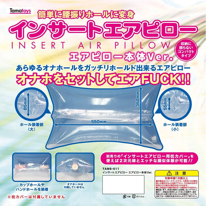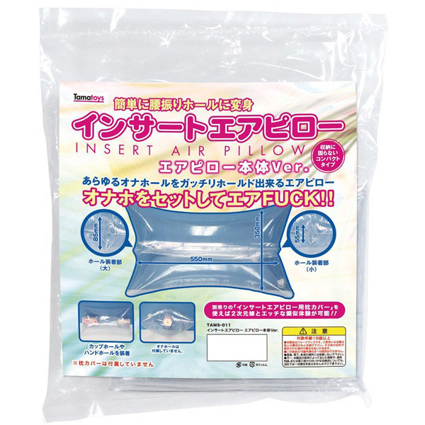 お手持ちのオナホールをセットするだけで、簡単に腰振りオナニーが出来るタマトイズのエアピロー。 ●大小二つの挿入穴を本体上下に配置●本体サイズ:55cm×35cm●ホール装着穴(大):8.5cm●ホール装着穴(小):5.5cm●保管にも便利なコンパクトタイプ。 カップホールやハンドホールなど様々なサイズに対応可能。 別売りの「インサートエアピロー用枕カバー」を装着すれば、二次元嫁とのリアルな疑似H体験が楽しめます。 ●メーカー型番:TAMS-011 ※オナホール、枕カバーは付属しておりません |